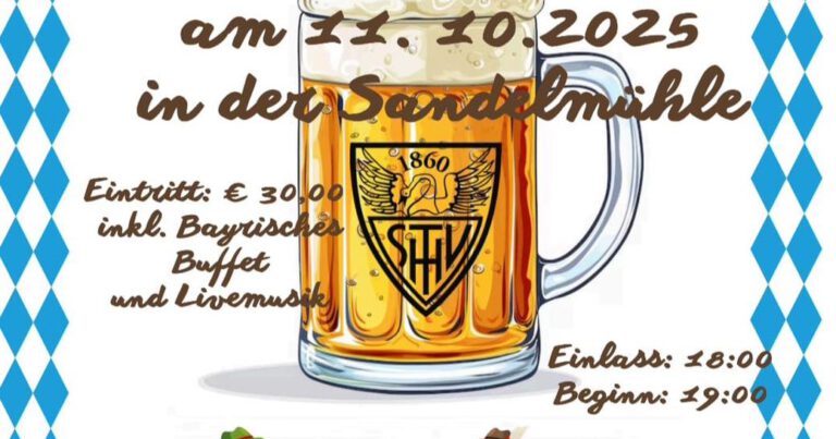 Der Herbst steht vor der Tür – und mit ihm ein echtes Highlight im Vereinskalender: Unser großes Oktoberfest am 11. Oktober 2025 im Vereinsheim Sandelmühle! Ob Mitglied, Freund oder Unterstützer – wir laden euch alle herzlich ein, einen unvergessl